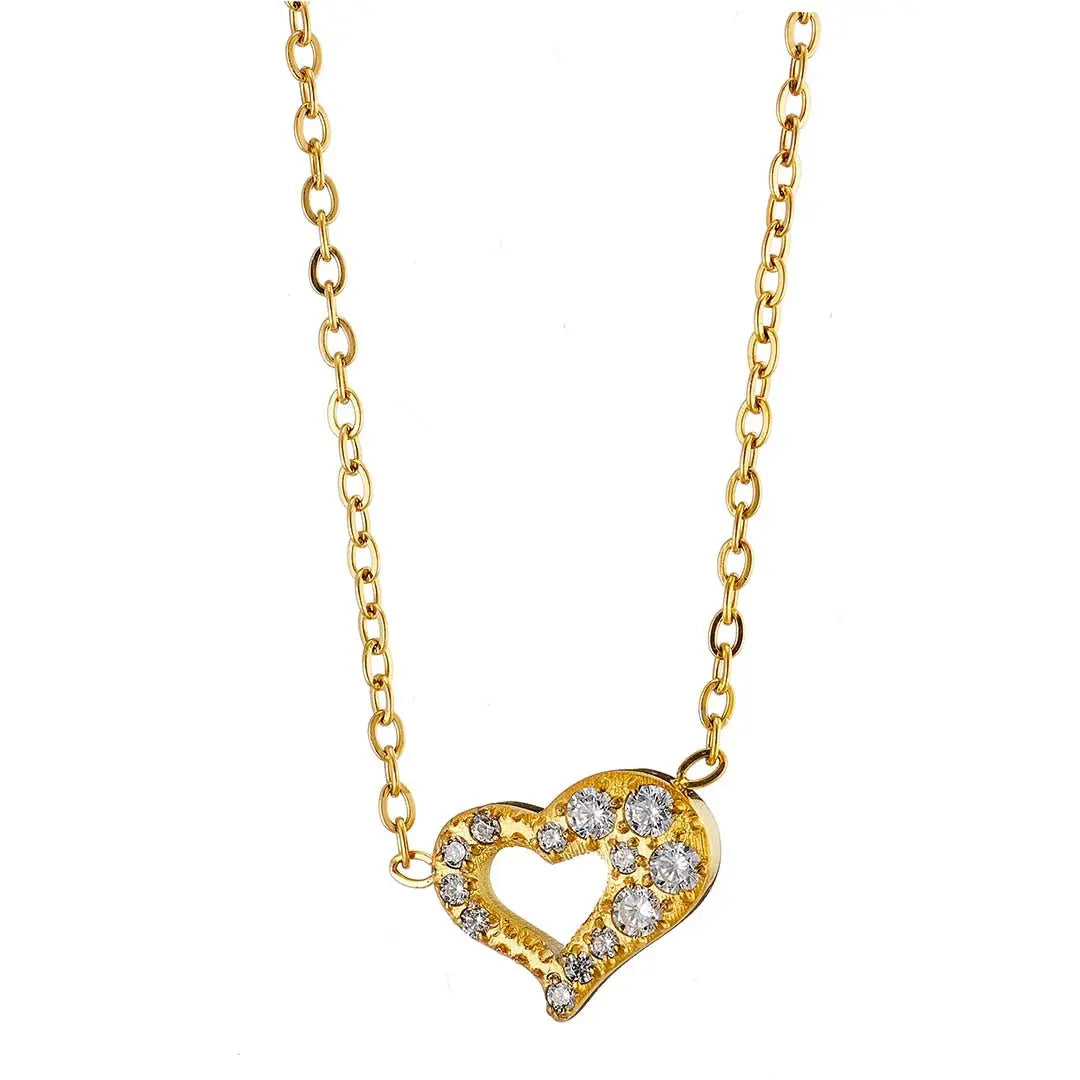 N07139G Gold Plated Steel Necklace with Green Zircon