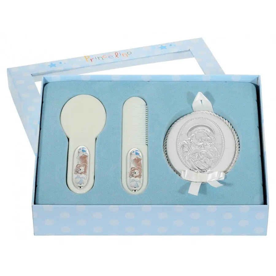 Set of silver image with comb and brush for girl, suitable gift for a birth or a christening.