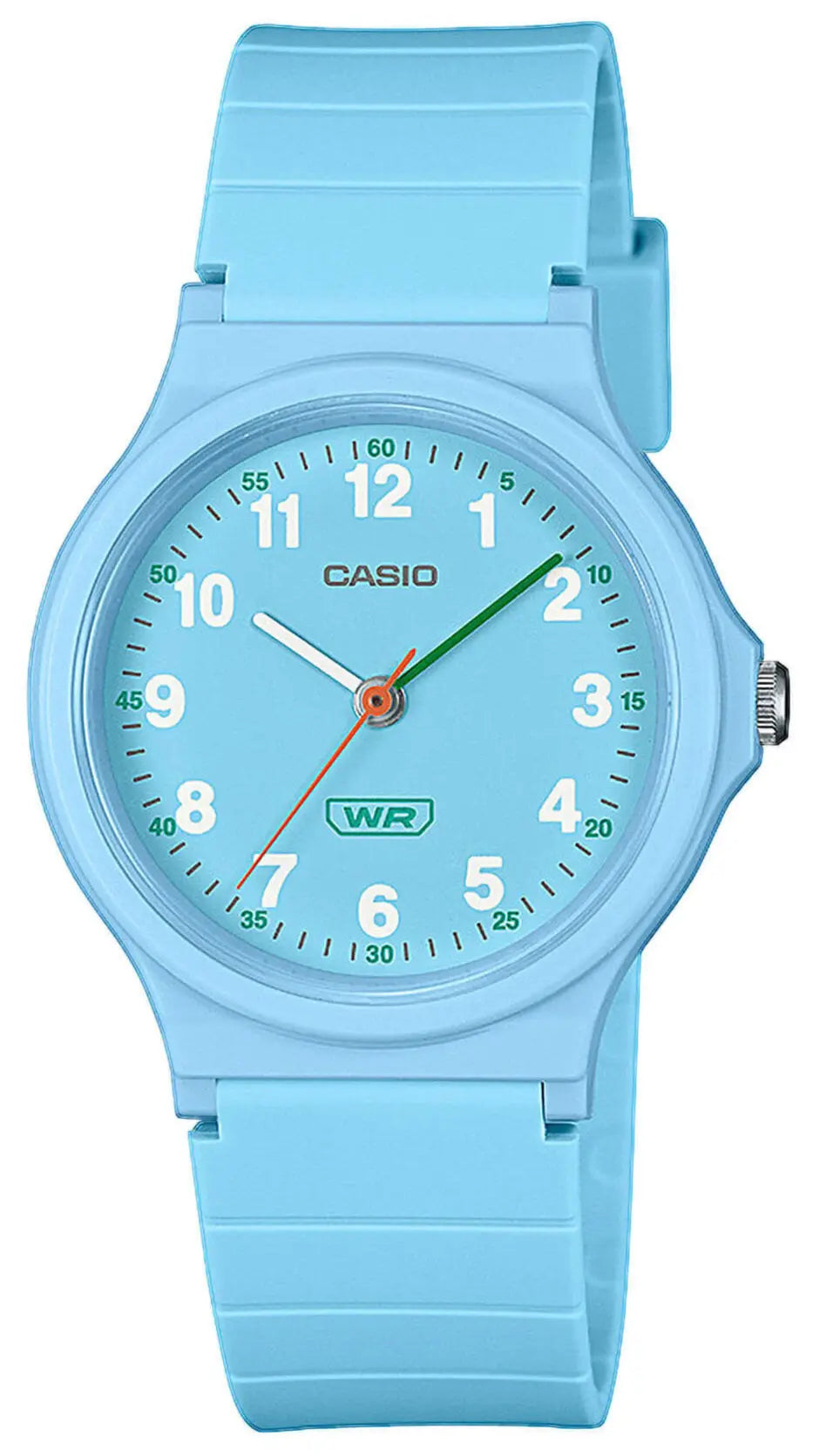 The Casio women's watch or children's watch is Analog , has a diameter of 34.9 mm and carries a 2-year warranty from the official agency. This particular model is waterproof for accidental contact with water and its waterproofing is 3 ATM or 30 meters.