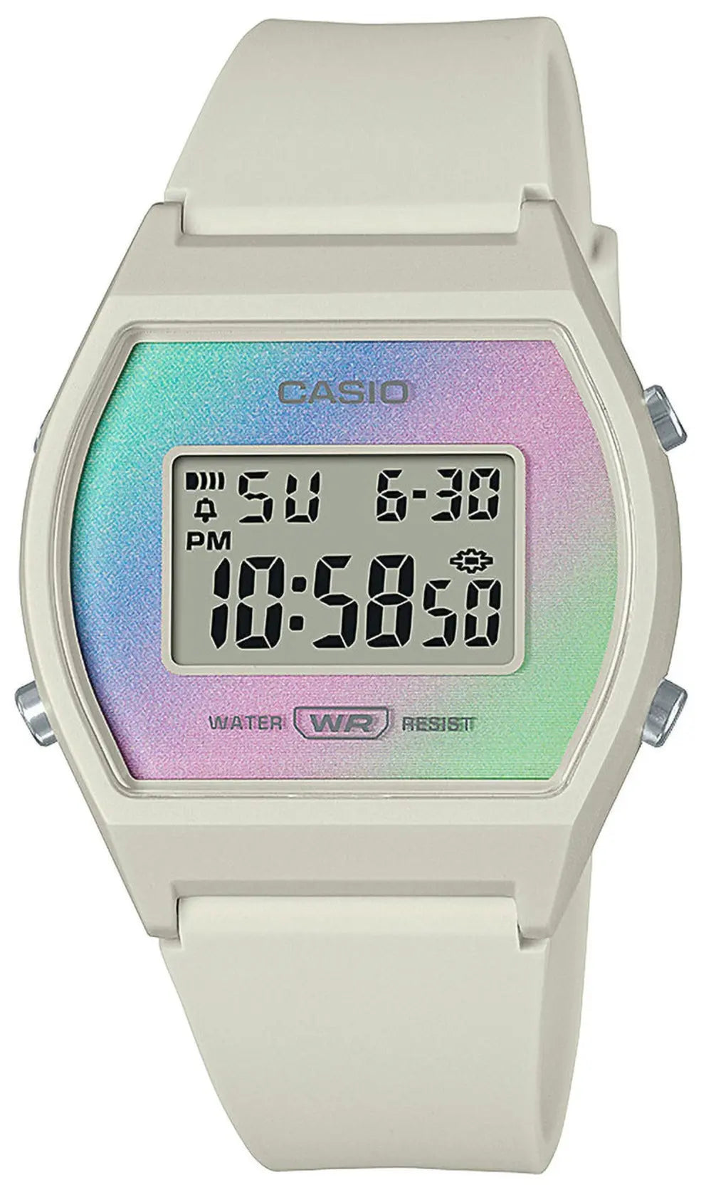The women's watch Casio is Digital , has a diameter of 35 mm and has a 2-year warranty from the official agency. This particular model is waterproof for accidental contact with water and its waterproofing is 3ATM or 30 meters.