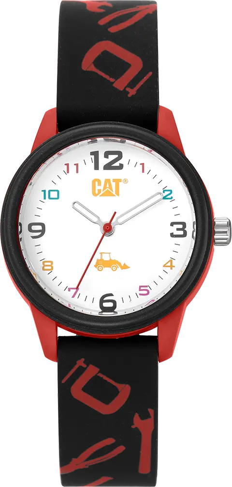 The children's watch Caterpillar and its sporty design make it a timeless, reliable and tasteful choice. With glass made from mineral crystal , it exudes luxury and durability. The round shape of the case, combined with the black rubber strap highlight the white dial and elevate any look.