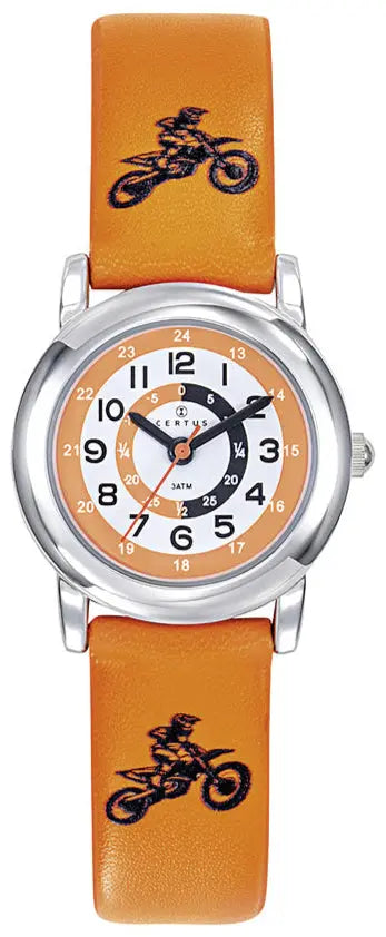 The CERTUS children's watch has a diameter of 26mm and carries a 2-year warranty from the official agency. This particular model is waterproof for accidental contact with water and its waterproofing is 3 ATM or 30 meters .