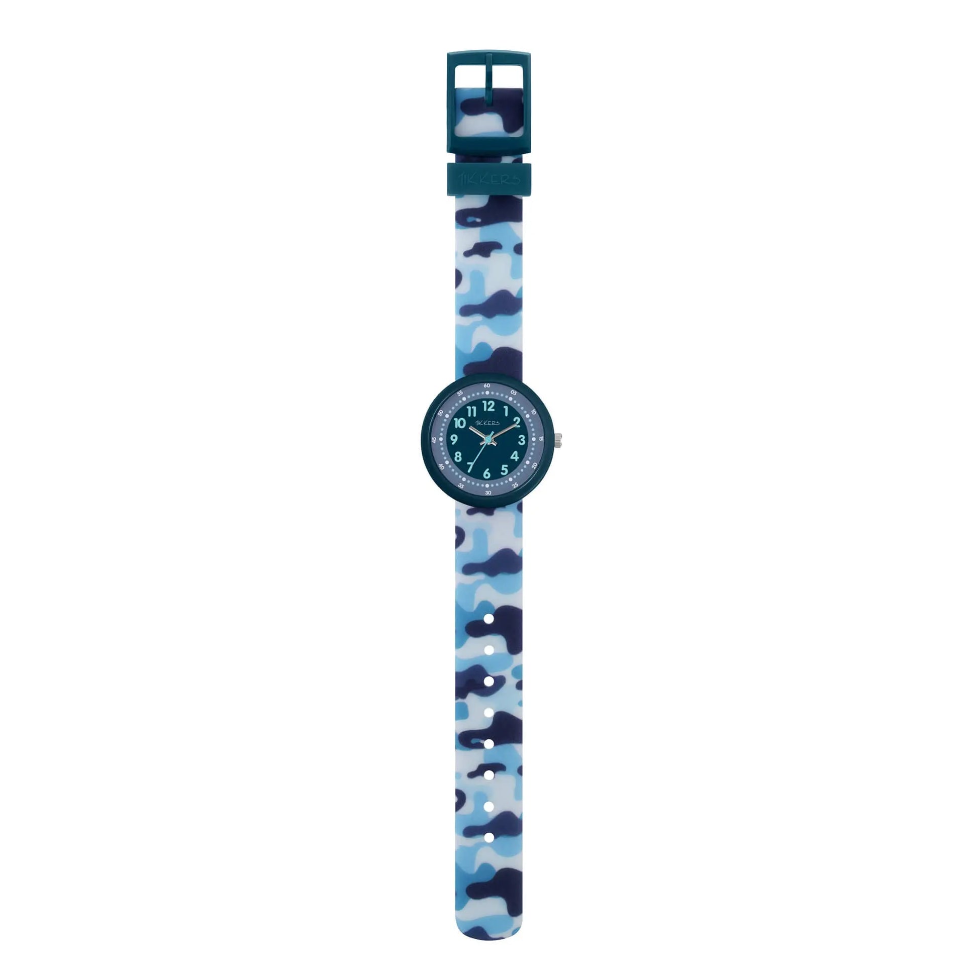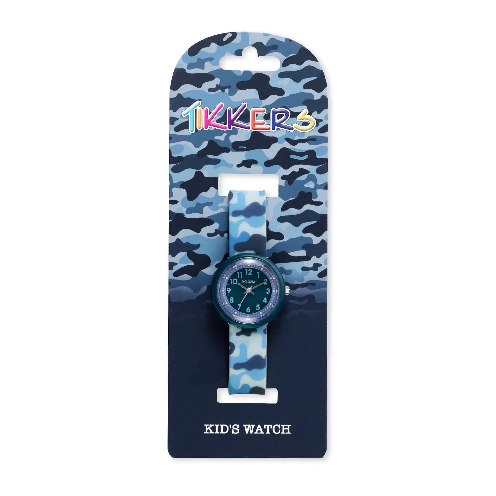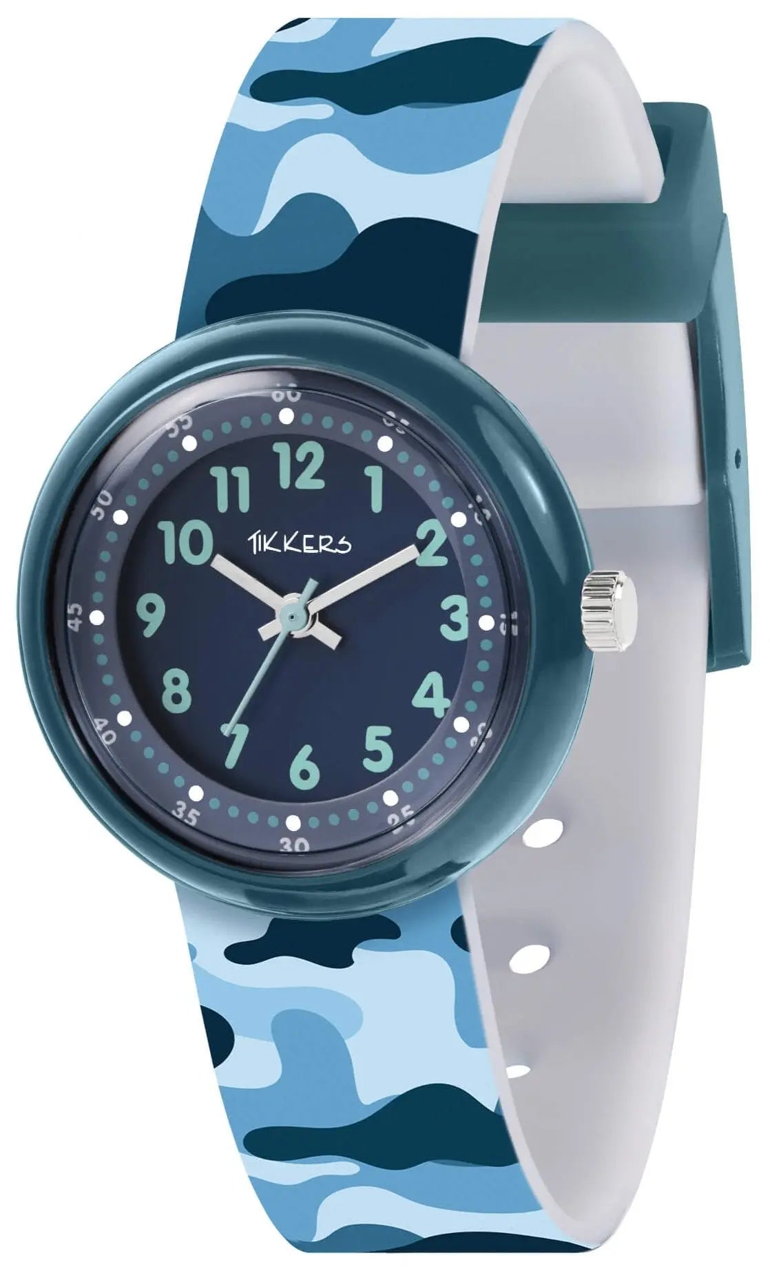 The children's watch Tikkers , is a children's watch for learning the time. The glass is made of mineral crystal and the case is round. The black strap is made of soft canvas with 3D chevron detailing and an easy hook and loop closure, making it easy for our little friends and the white dial with specially designed markings to help children tell the time with confidence, are a beautiful combination that will win you over. All together create a unique watch, which combines fashion, comfortable fit and bright colors. Comes in a gift box, which also includes a sheet of exclusive Tikkers stickers!