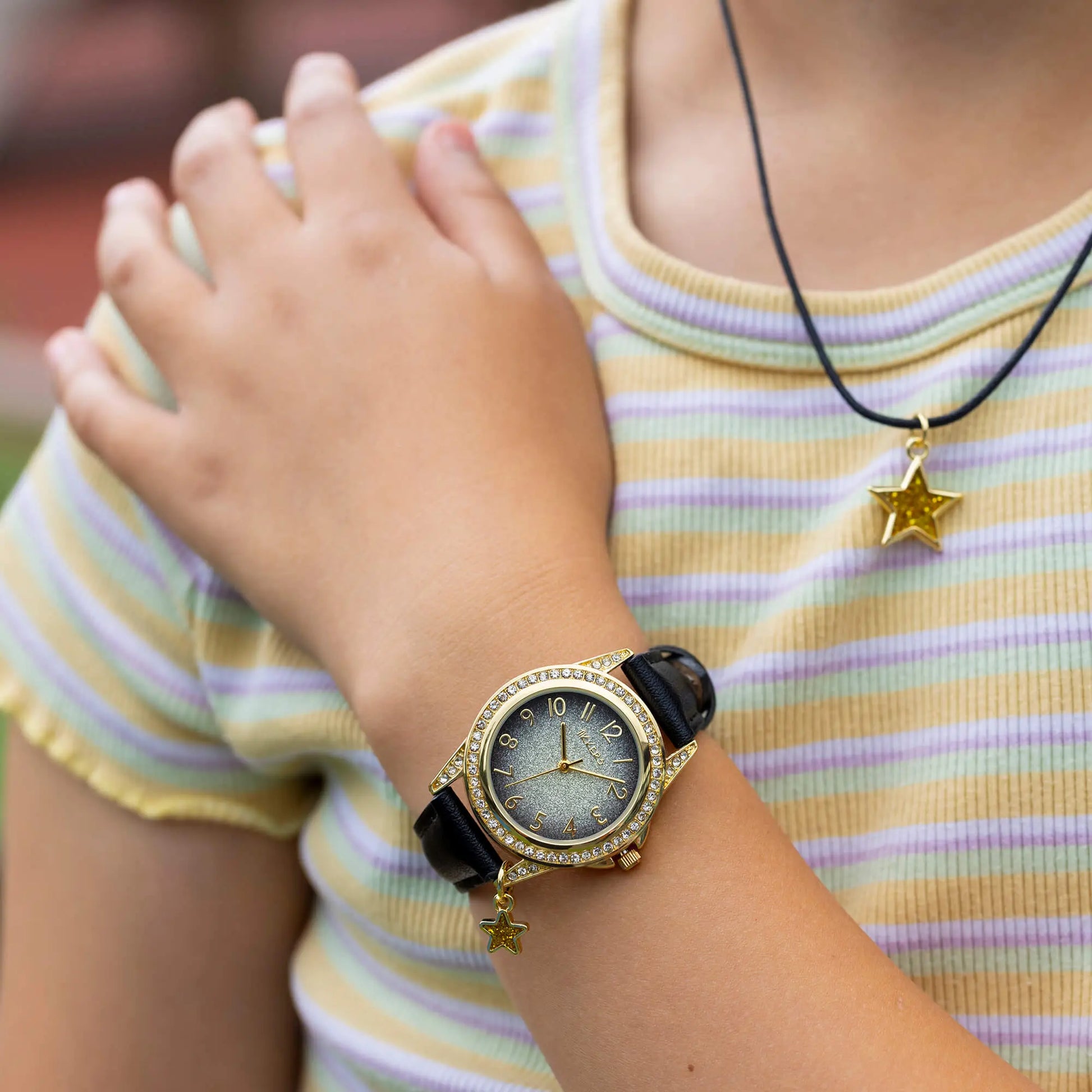 Tikkers ATK1109 Kids Glitter Gift Set Black Leather Strap