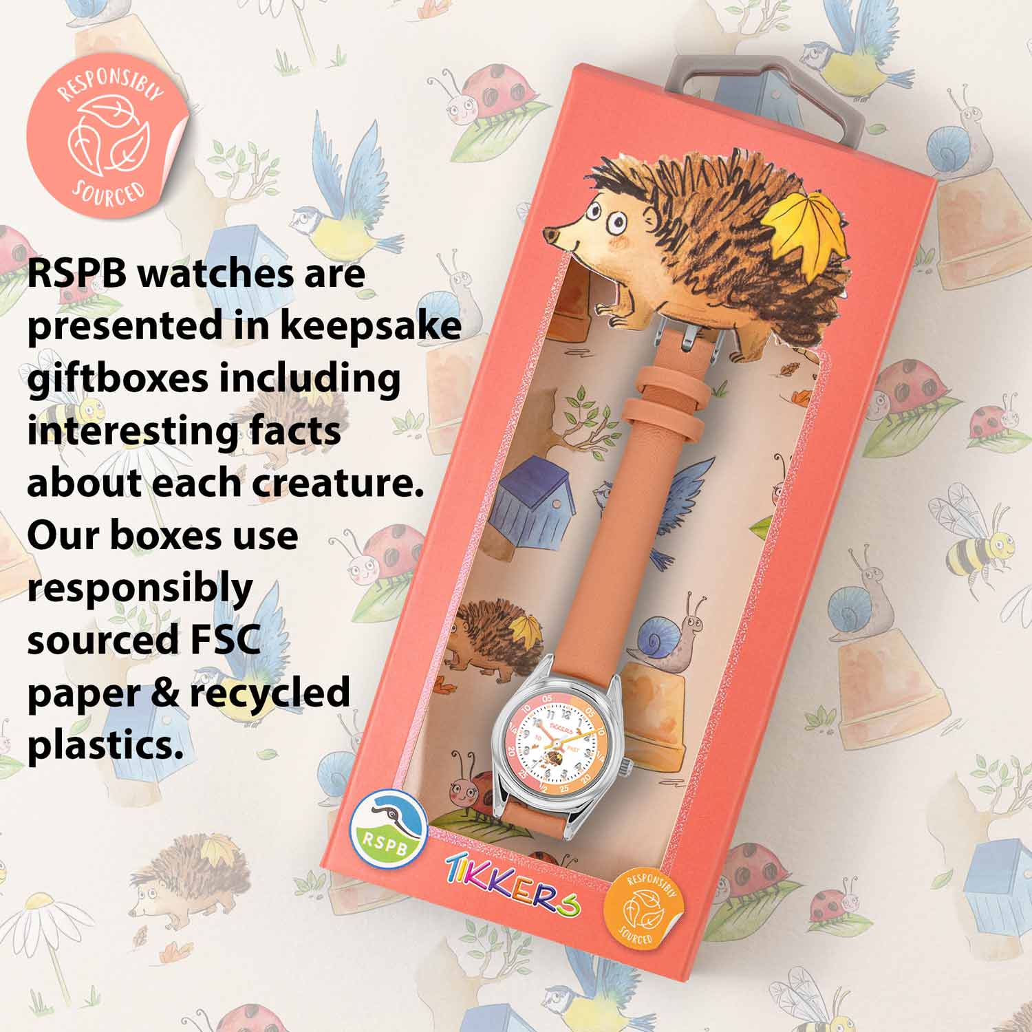 Tikkers TKRSPB07 Kids RSPB Hedgehog Coral Leather Strap
