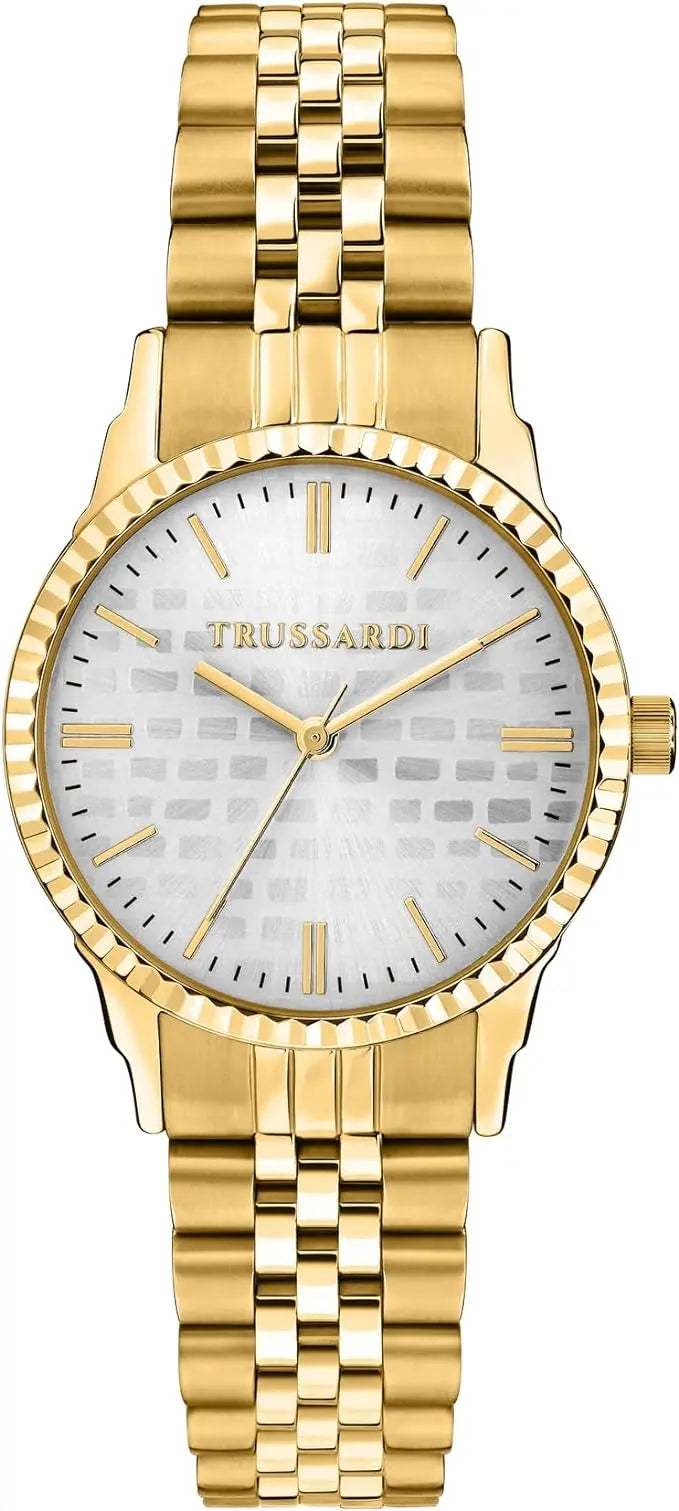 The Trussardi women's watch and its special design give an accurate timekeeping experience. With glass made from mineral crystal , it combines traditional Italian refinement with precision. The round shape of the case, combined with the silver stainless steel bracelet , highlight the white dial and create a modern and sophisticated look.