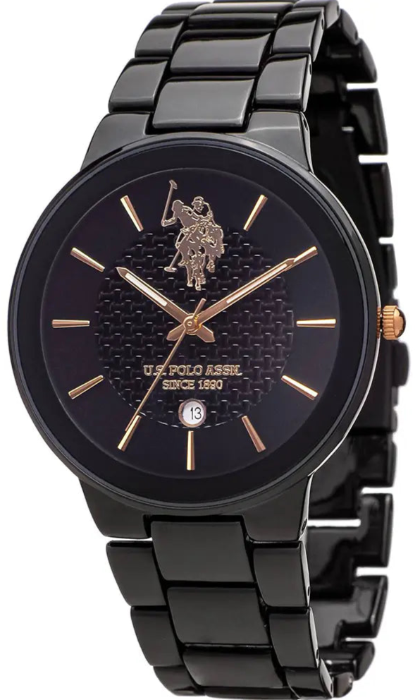The U. S. Polo men's watch and its sporty air, make it a timeless, yet original choice. With glass made of mineral crystal , exudes luxury and vintage aesthetics. The round shape of the case, combined with the black stainless steel bracelet highlight the black dial and elevate any look.