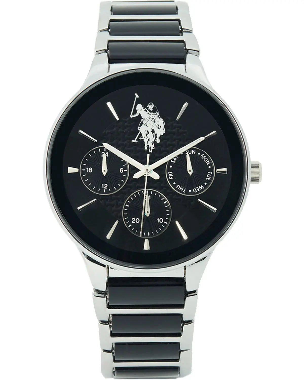 The U. S. Polo men's watch and its sporty air, make it a timeless, yet original choice. With glass made of mineral crystal , exudes luxury and vintage aesthetics. The round shape of the case, combined with the two-tone stainless steel bracelet highlight the black dials and elevate any look.