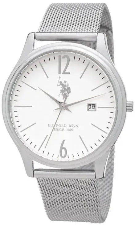 The U. S. Polo men's watch and its sporty air, make it a timeless, yet original choice. With glass made of mineral crystal , exudes luxury and vintage aesthetics. The round shape of the case, combined with the silver metal bracelet highlight the green dial and elevate any look.