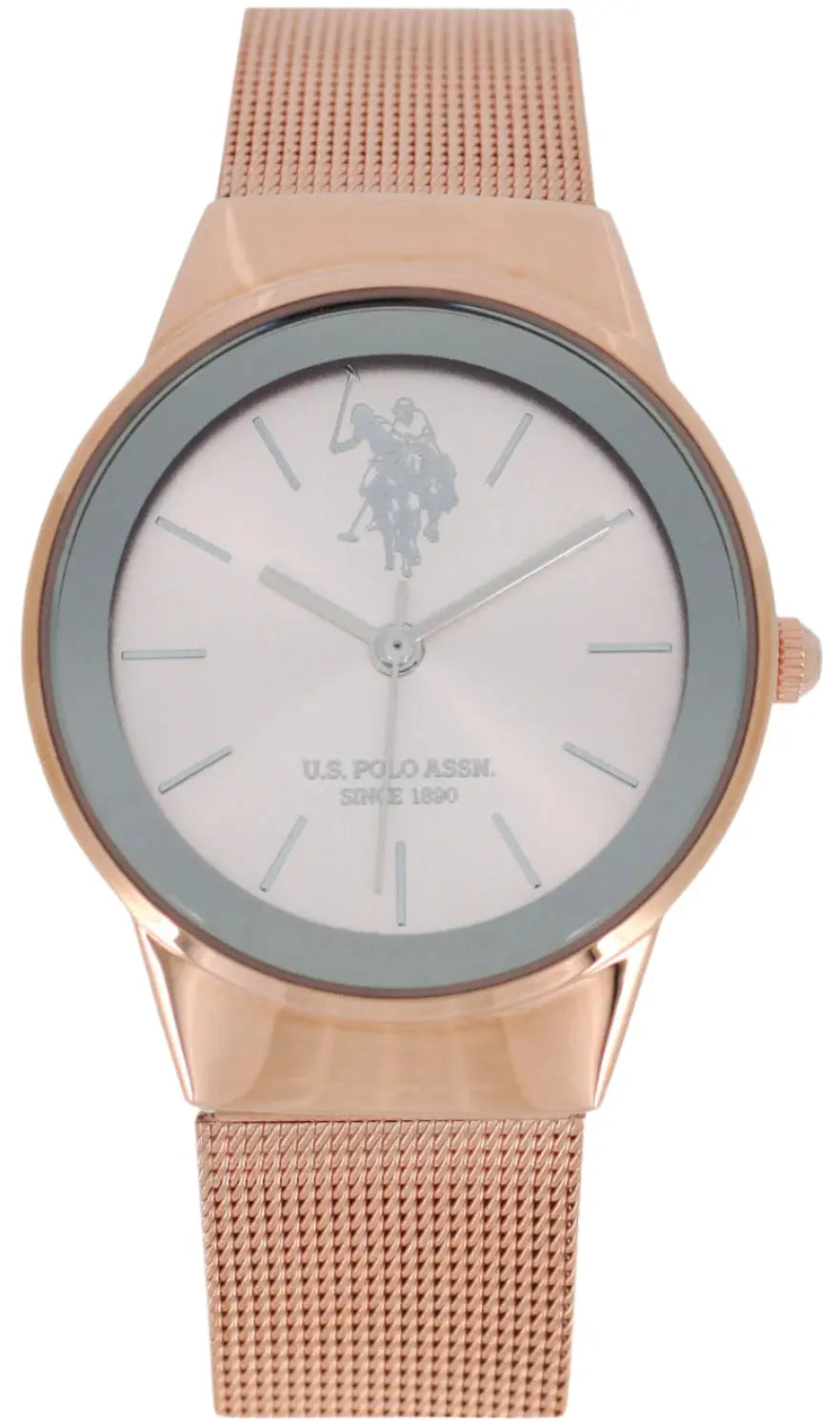 The U.S. Women 's Watch  Polo and its sporty air, make it a timeless, yet original choice. With glass made of mineral crystal , it exudes luxury and vintage aesthetics.. The round shape of the case, combined with the rose gold bracelet , highlight the distinctive pink dial and elevate any look.