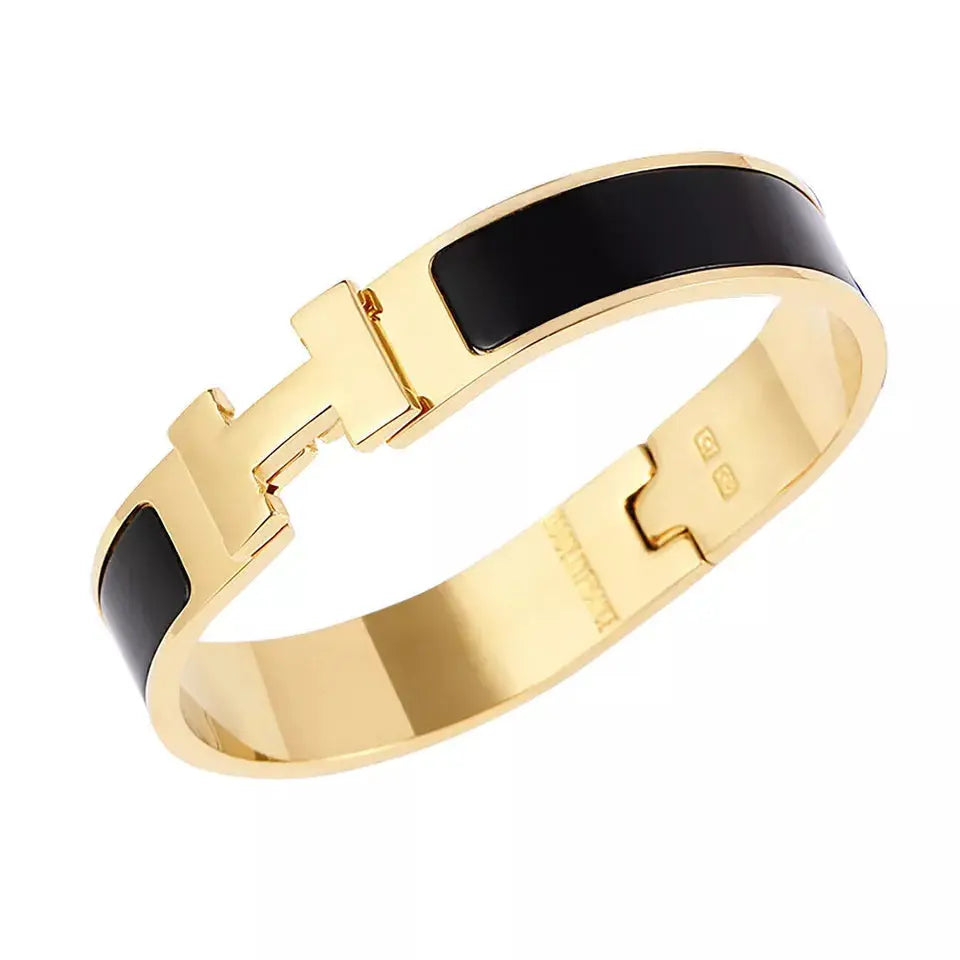 Βραχιόλι KB35G Χειροπέδα Από Επιχρυσωμένο Ατσάλι με Μαύρο Σμάλτο