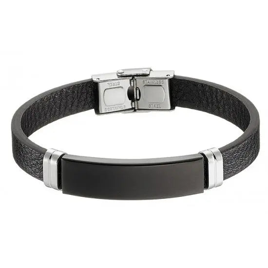 Το εντυπωσιακό ανδρικό βραχιόλι είναι ένα κόσμημα από ατσάλι και μαύρο δέρμα, σε μαύρο χρώμα που συνδυάζει εξαιρετική ποιότητα και design. Κατάλληλο για δώρο που θα μείνει αναλλοίωτο στον χρόνο.