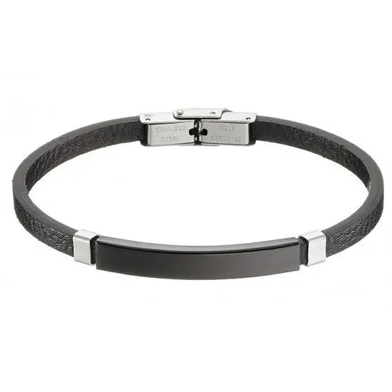 Το εντυπωσιακό ανδρικό βραχιόλι είναι ένα κόσμημα από ατσάλι και μαύρο δέρμα, σε μαύρο χρώμα που συνδυάζει εξαιρετική ποιότητα και design. Κατάλληλο για δώρο που θα μείνει αναλλοίωτο στον χρόνο.