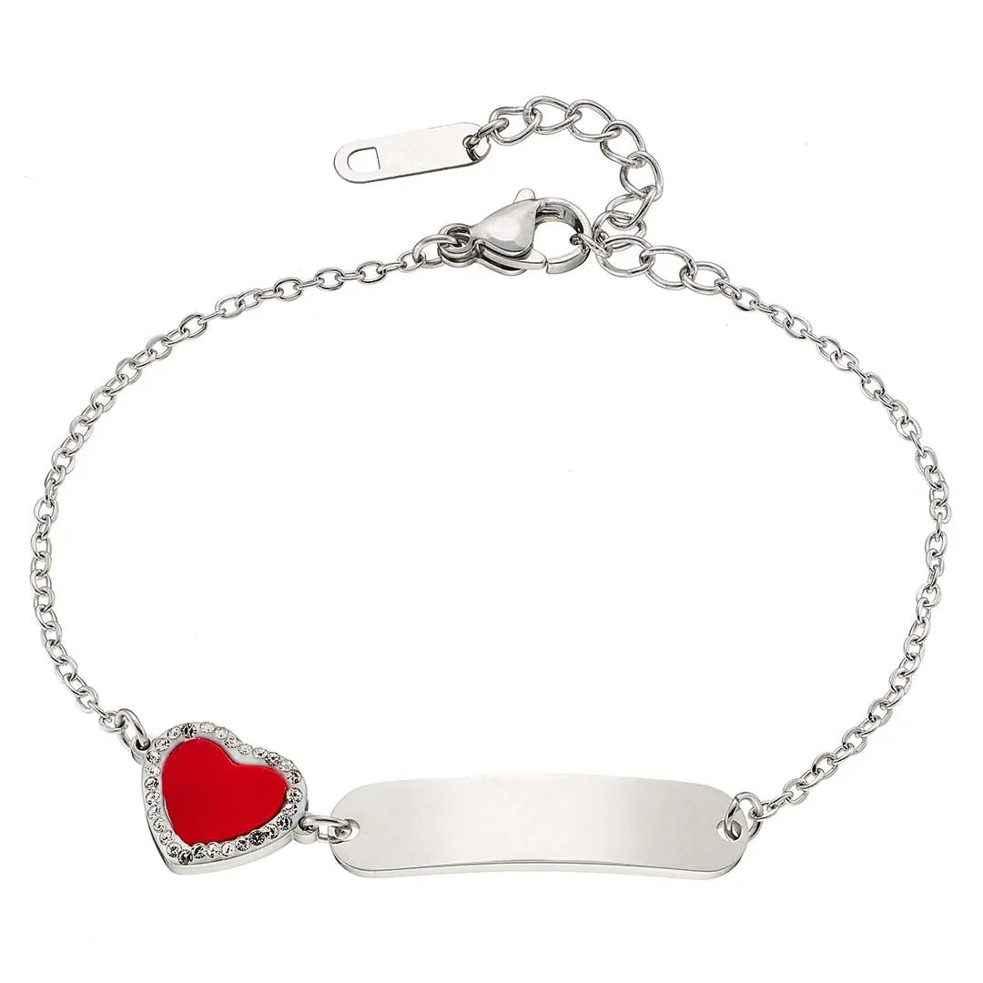 Βραχιόλι N01018W Ταυτότητα Από Ανοξείδωτο Ατσάλι με Κόκκινη Καρδιά