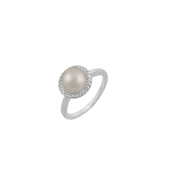 Δαχτυλίδι RG157-1 Μονόπετρο Από Επιπλατινωμένο Ασήμι με Πέρλα
