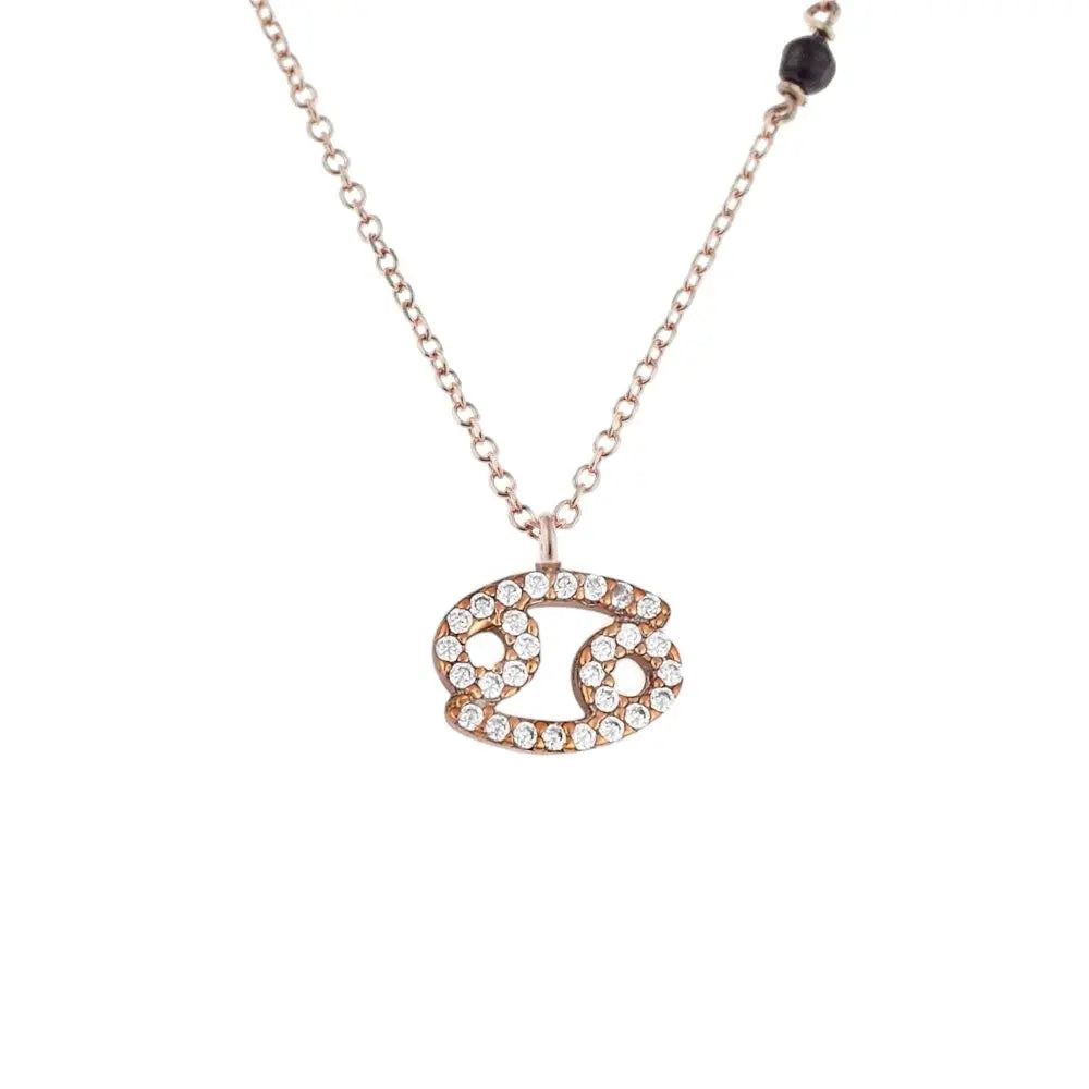Το γυναικείο κόσμημα κολιέ ζώδιο είναι φτιαγμένο από χρυσό σε χρώμα ροζ χρυσού 9 καρατίων με λευκά ζιργκόν, που συνδυάζει εξαιρετική ποιότητα και design.