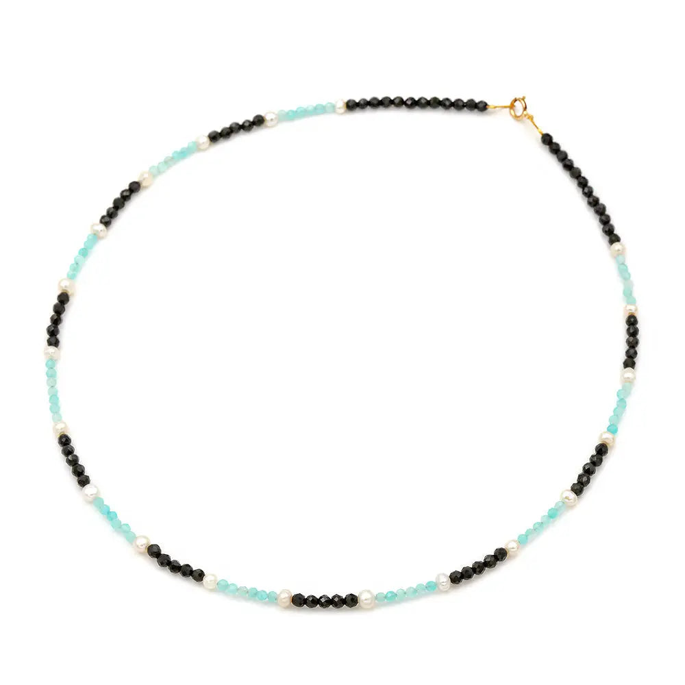 Κολιέ 112570 με Αμαζονίτη Σπινέλιο και Μαργαριτάρια 4,0mm 14ct