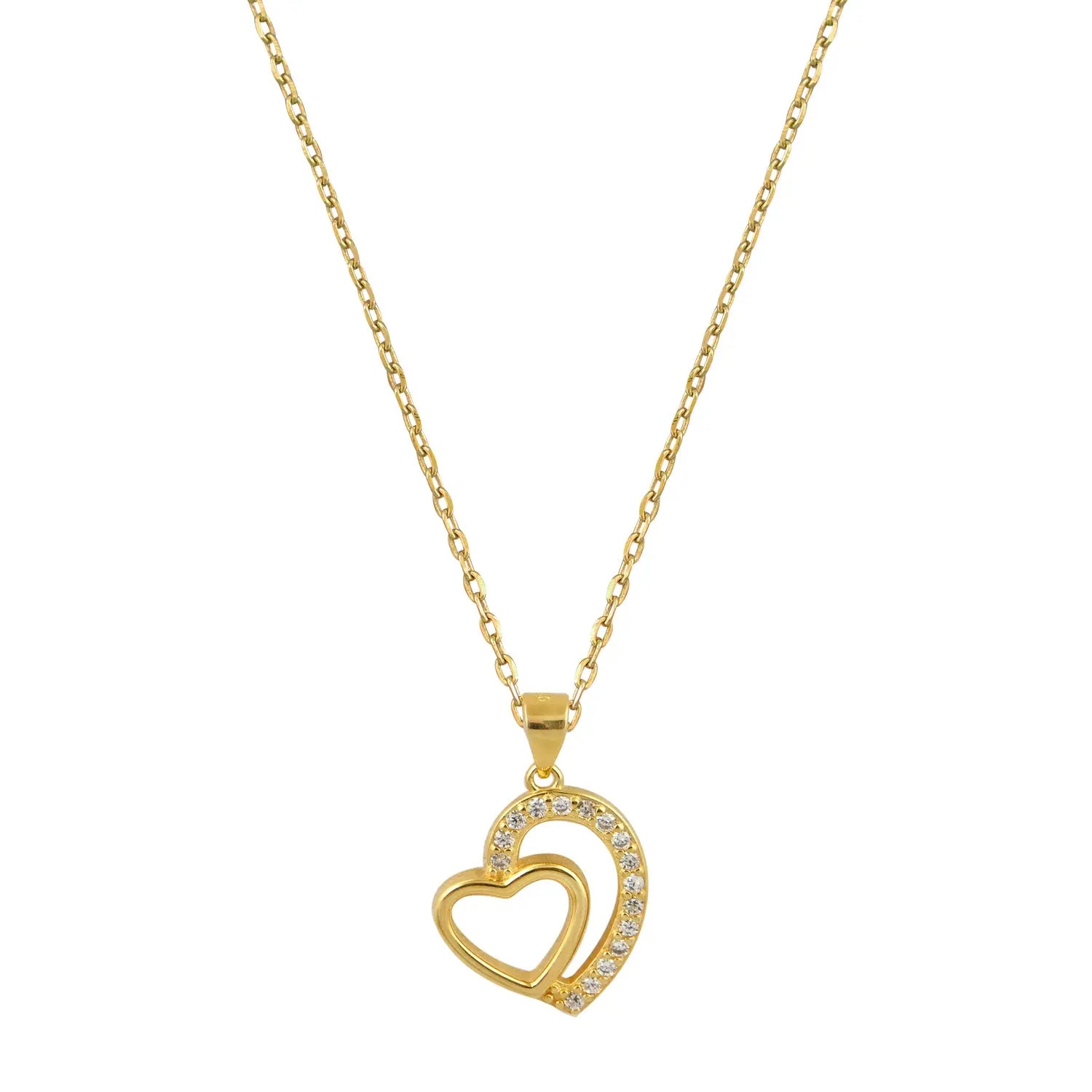 Κολιέ GM981G Διπλή Καρδιά Από Επιχρυσωμένο Ασήμι με Ζιργκόν