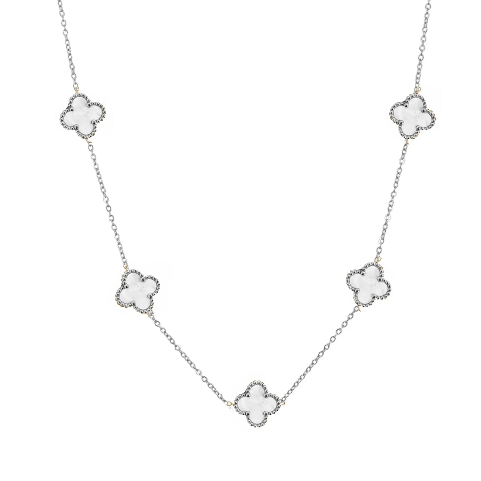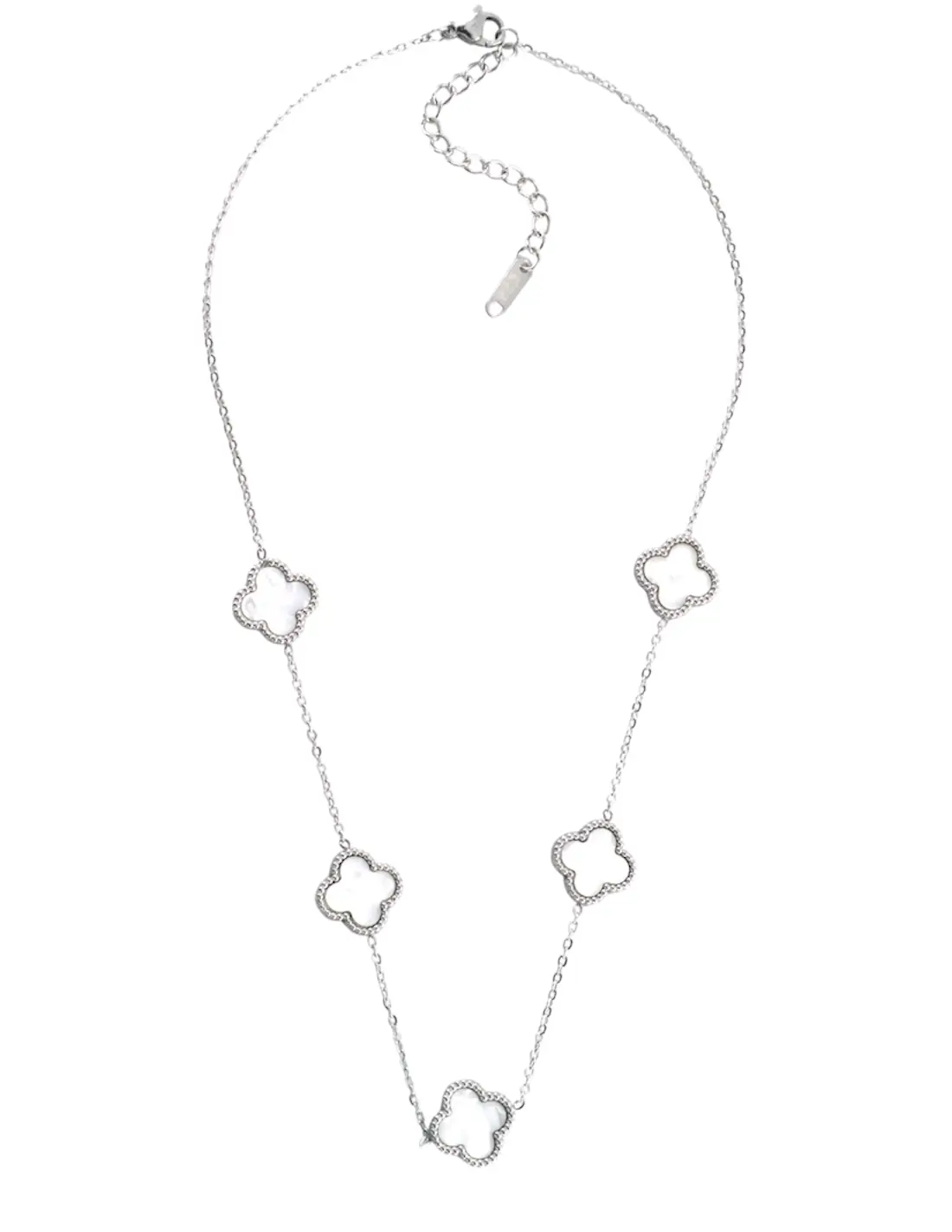 Το γυναικείο κόσμημα κολιέ είναι ένα κόσμημα από ατσάλι με λευκούς σταυρούς φίλντισι, που συνδυάζει εξαιρετική ποιότητα και design.
