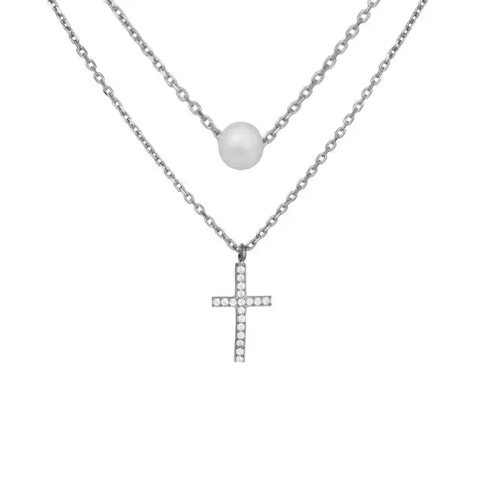 Κολιέ MC7892W Σταυρός Από Ανοξείδωτο Ατσάλι με Πέρλα