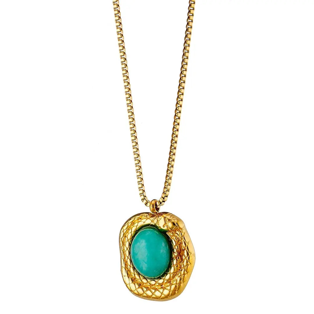 Κολιέ N07239G Από Επιχρυσωμένο Ατσάλι με Τιρκουάζ