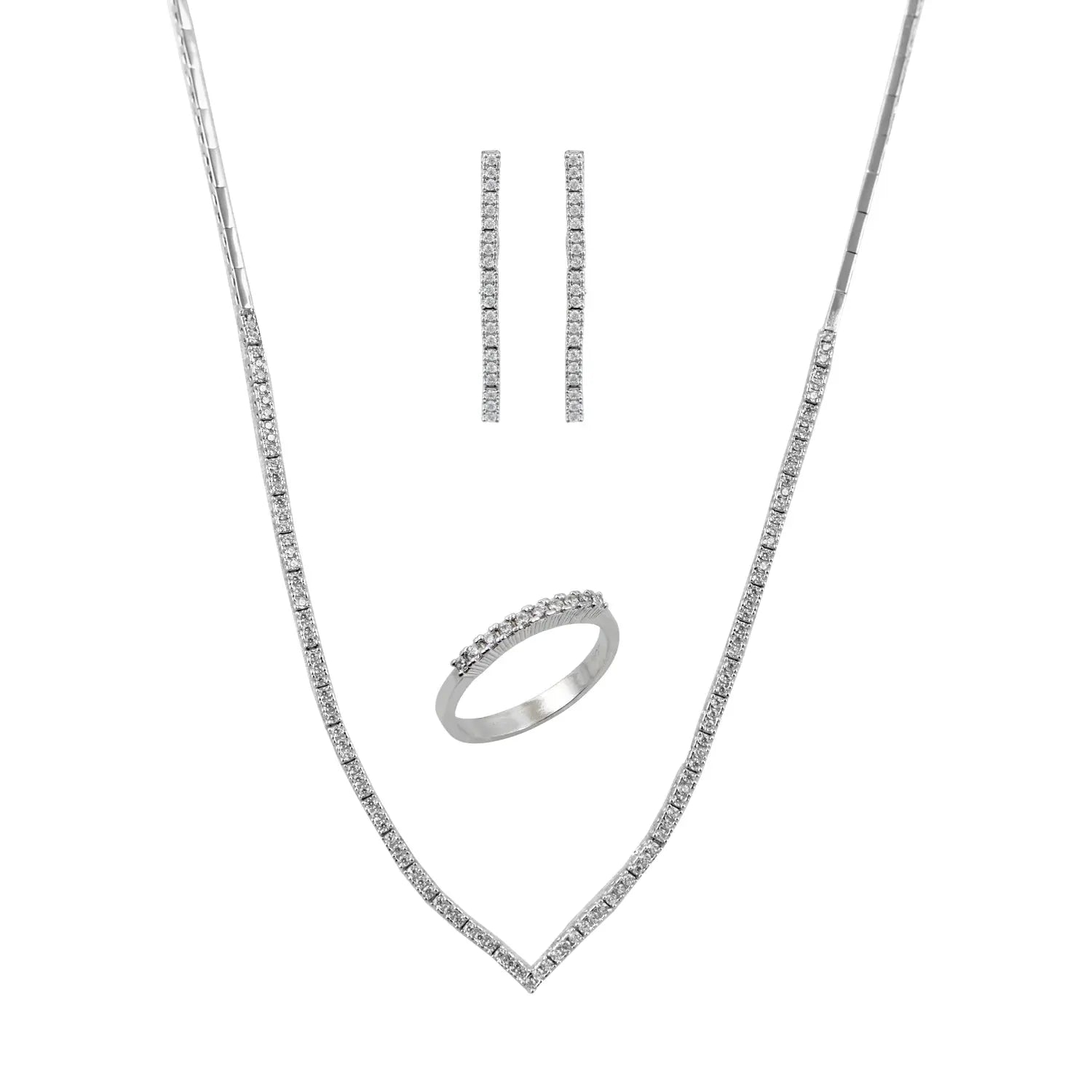 Σετ KB779W Κολιέ με Σκουλαρίκια Βραχιόλι και Δαχτυλίδι Από Επιπλατινωμένο Ασήμι με Ζιργκόν
