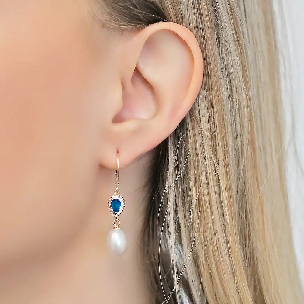 Τα εντυπωσιακά σκουλαρίκια με λευκά μαργαριτάρια γλυκού νερού Fresh Water Pearl διαστάσεων 8,0 x 10,0mm σε σχήμα Drop (σταγόνα) ποιότητας ΑΑΑΑ.