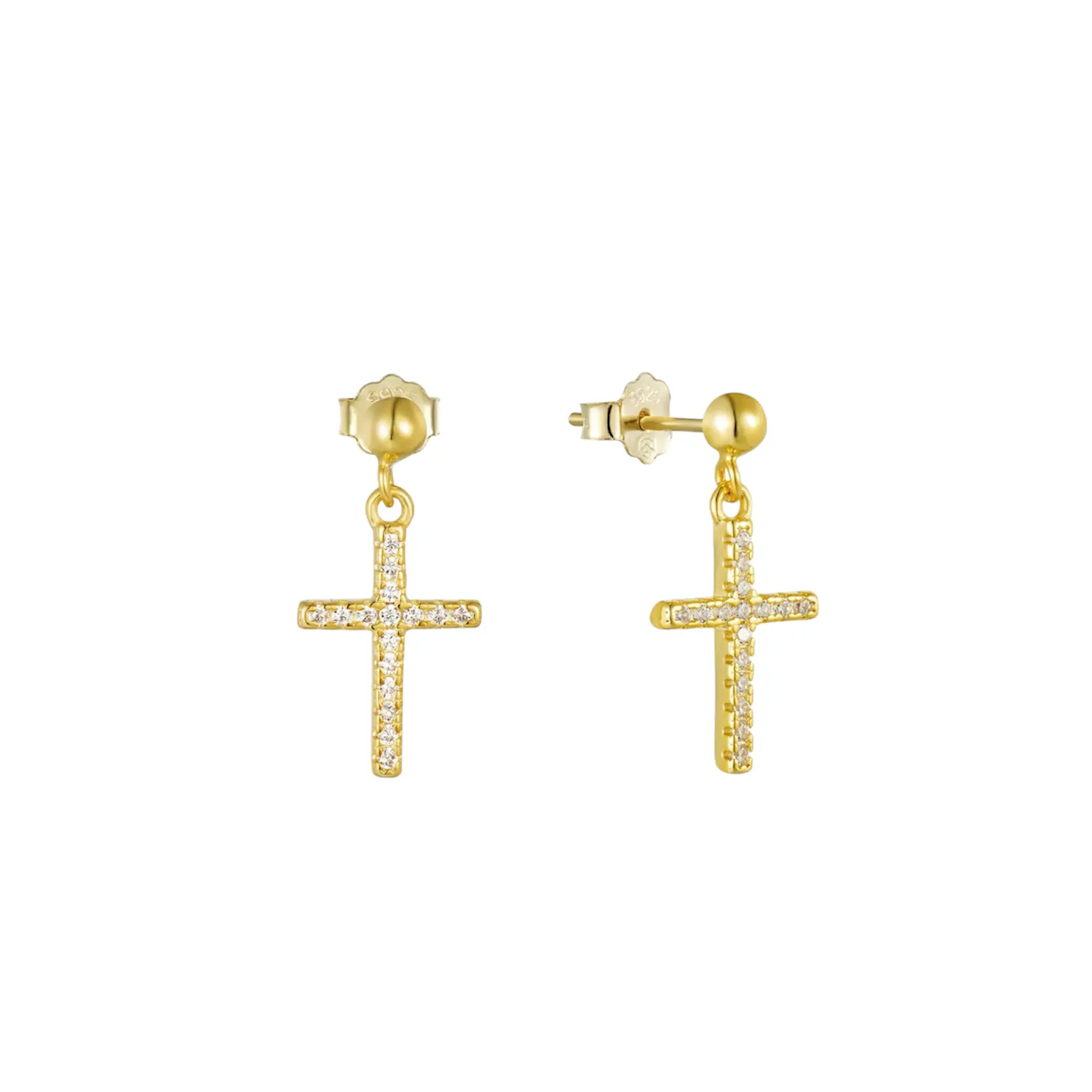 Σκουλαρίκια SC687-3 Σταυροί από Επιχρυσωμένο Ασήμι με Ζιργκόν