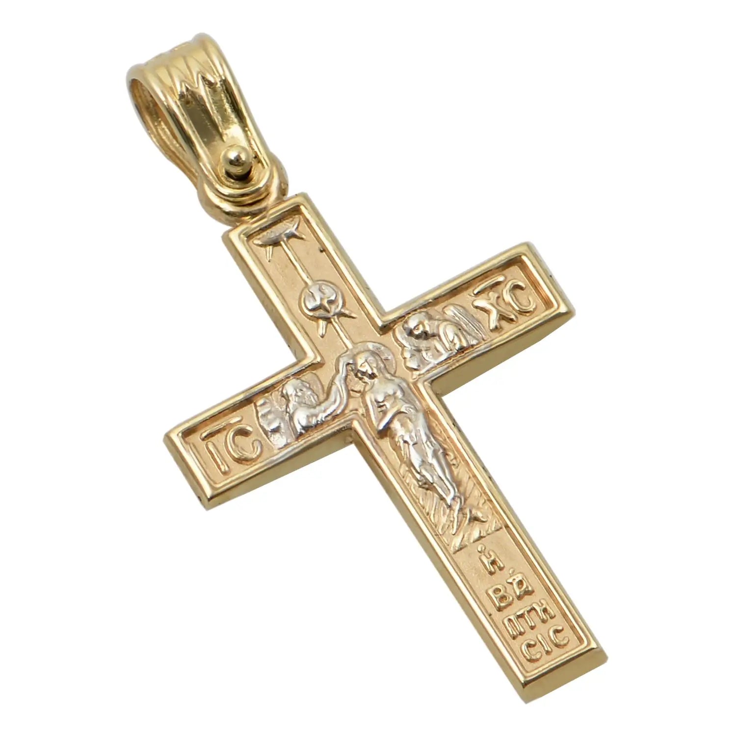 Οι εντυπωσιακοί βαφτιστικοί σταυροί είναι ένα κόσμημα από χρυσό 9 καρατίων, σε χρυσό χρώμα που είναι κατάλληλο για βάπτιση ή δώρο που θα μείνει αναλλοίωτο στον χρόνο.