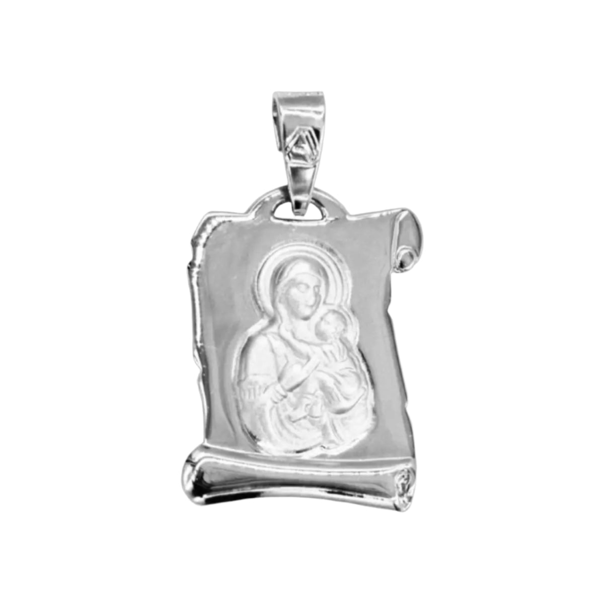 Φυλαχτό M140W Πλακέτα με Παναγία σε Λευκόχρυσο Κ9
