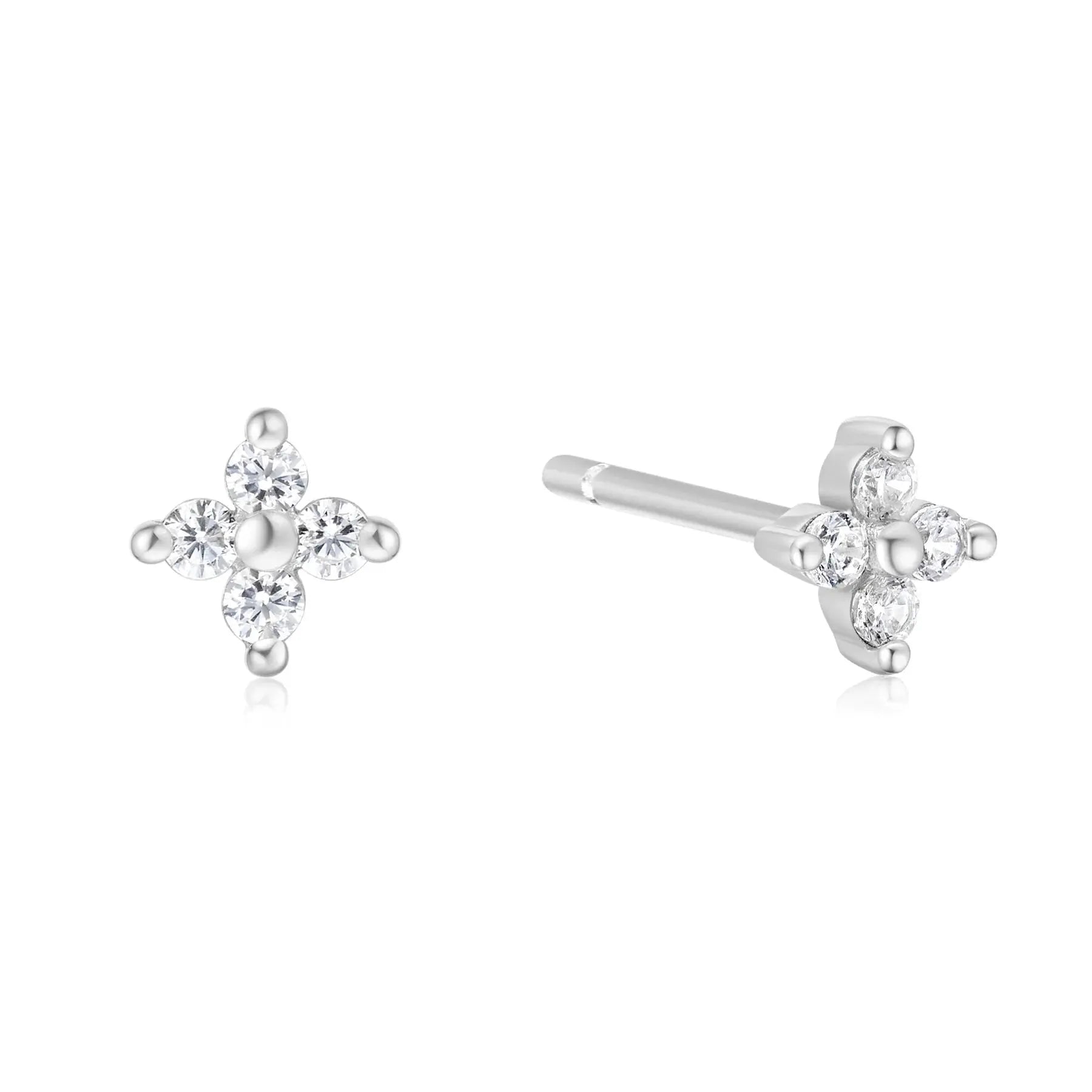 Ania Haie E064-01H Σκουλαρίκια Four-Petal Stud από Επιπλατινωμένο Ασήμι