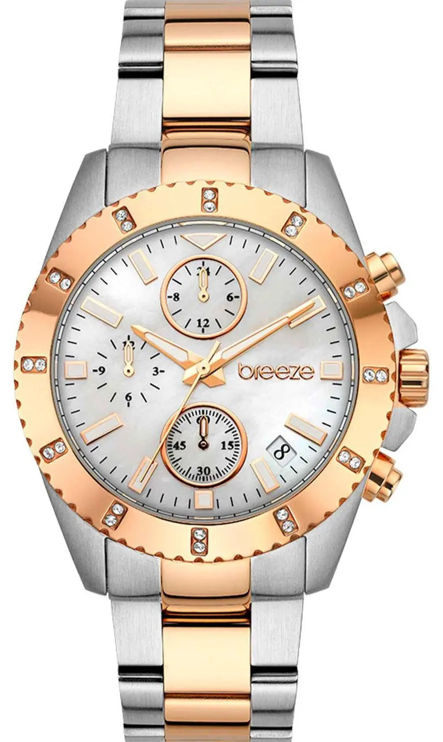 BREEZE 712461.5 Obsession Swarovski Chronograph Two Tone Stainless Steel Bracelet
