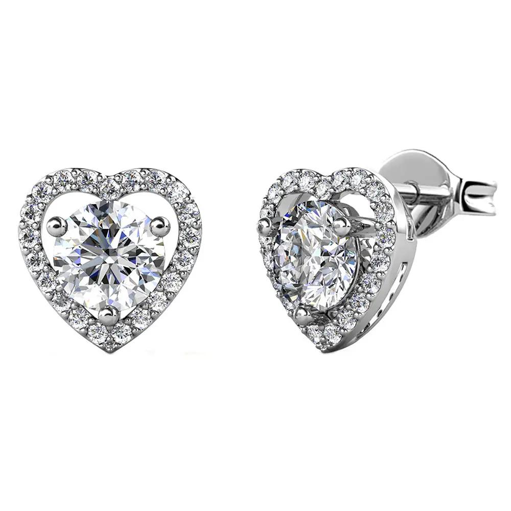 BRIZZLING BME013 Σκουλαρίκια από Επιπλατινωμένο Ασήμι με Διαμάντι Μοϊσανίτη