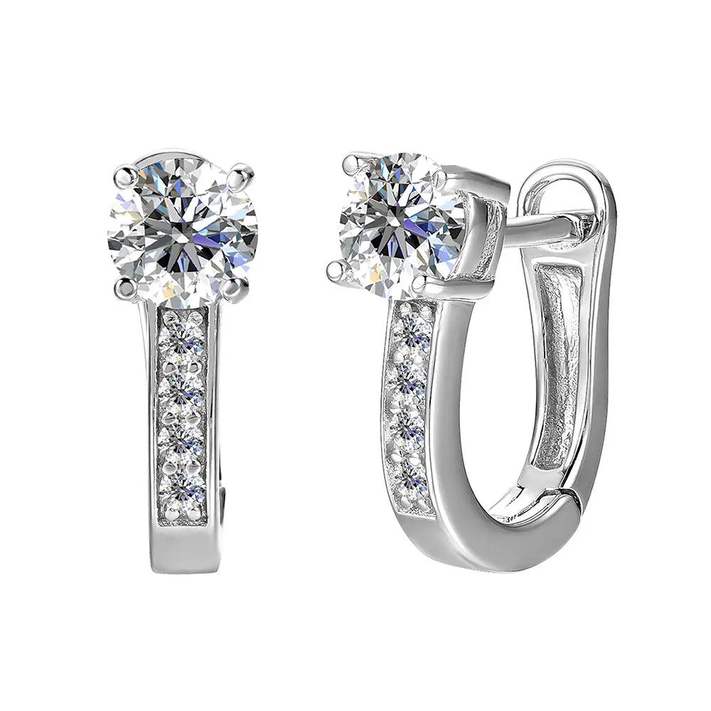 BRIZZLING BME061 Σκουλαρίκια Κρίκοι από Επιπλατινωμένο Ασήμι με Διαμάντι Μοϊσανίτη