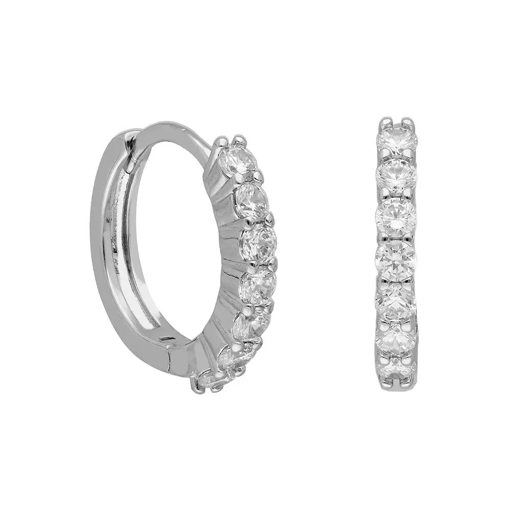 BRIZZLING BME167 Σκουλαρίκια Κρίκοι από Επιπλατινωμένο Ασήμι με Διαμάντι Μοϊσανίτη