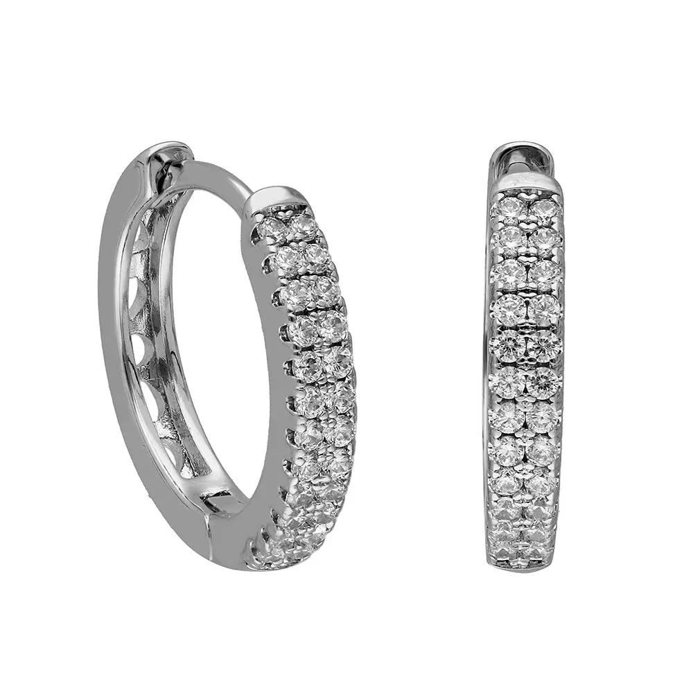 BRIZZLING BME172 Σκουλαρίκια Κρίκοι από Επιπλατινωμένο Ασήμι με Διαμάντι Μοϊσανίτη