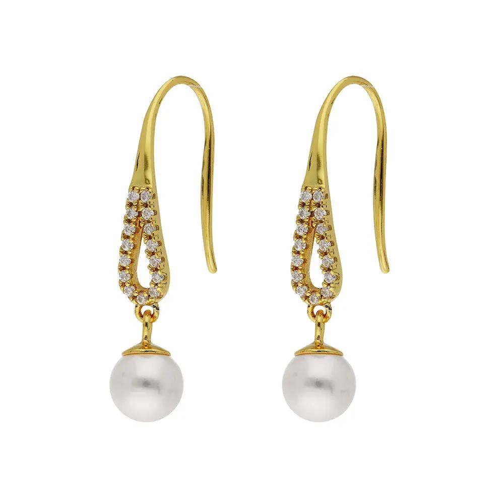 BRIZZLING BME190-D Σκουλαρίκια από Επιχρυσωμένο Ασήμι με Πέρλες & Διαμάντι Μοϊσανίτη