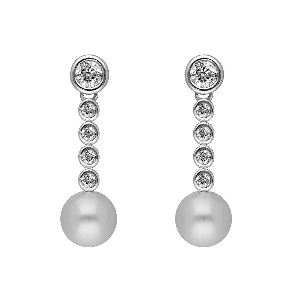 BRIZZLING BME204 Σκουλαρίκια από Επιπλατινωμένο Ασήμι με Πέρλες & Διαμάντι Μοϊσανίτη