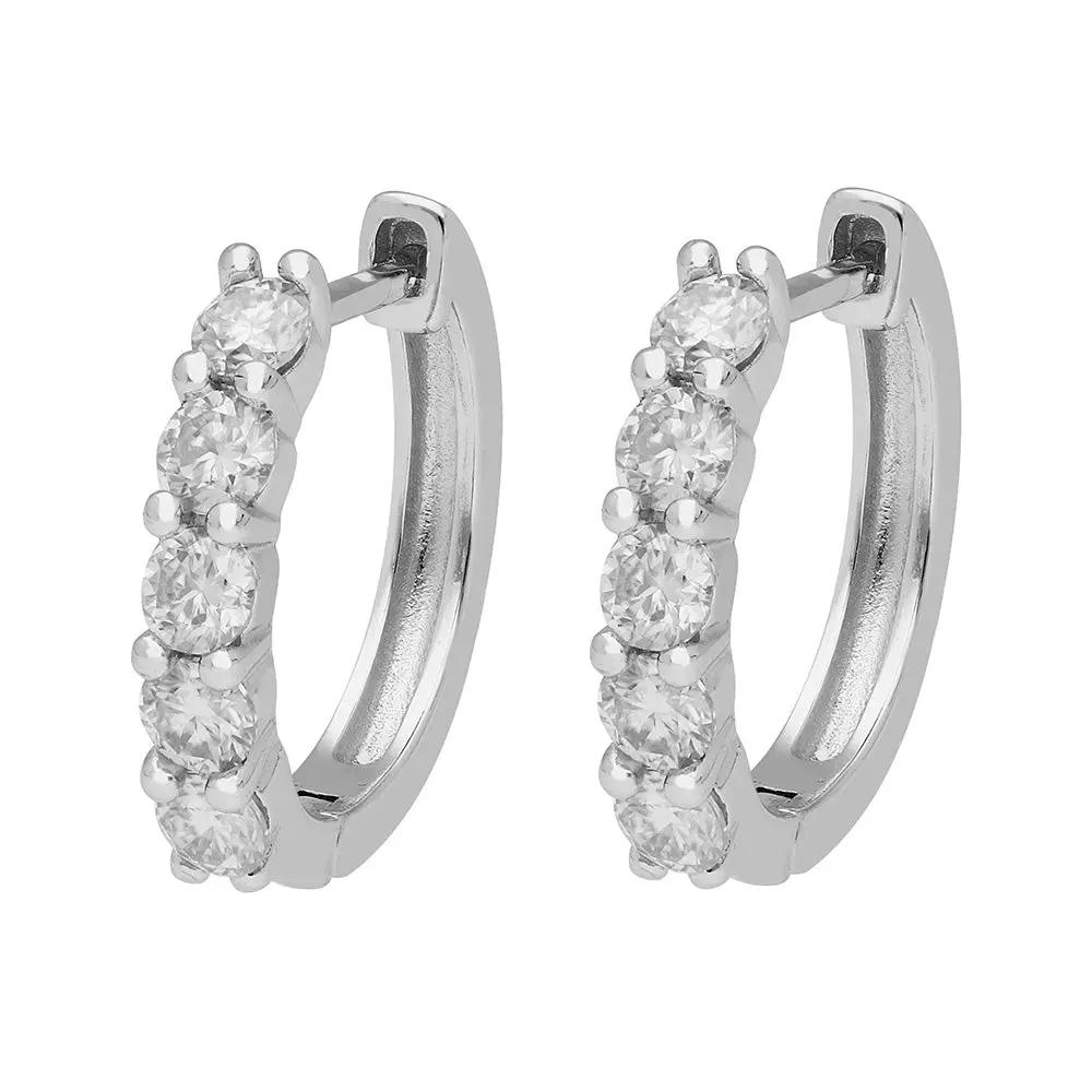 BRIZZLING BME2074 Σκουλαρίκια Κρίκοι από Επιπλατινωμένο Ασήμι με Διαμάντι Μοϊσανίτη