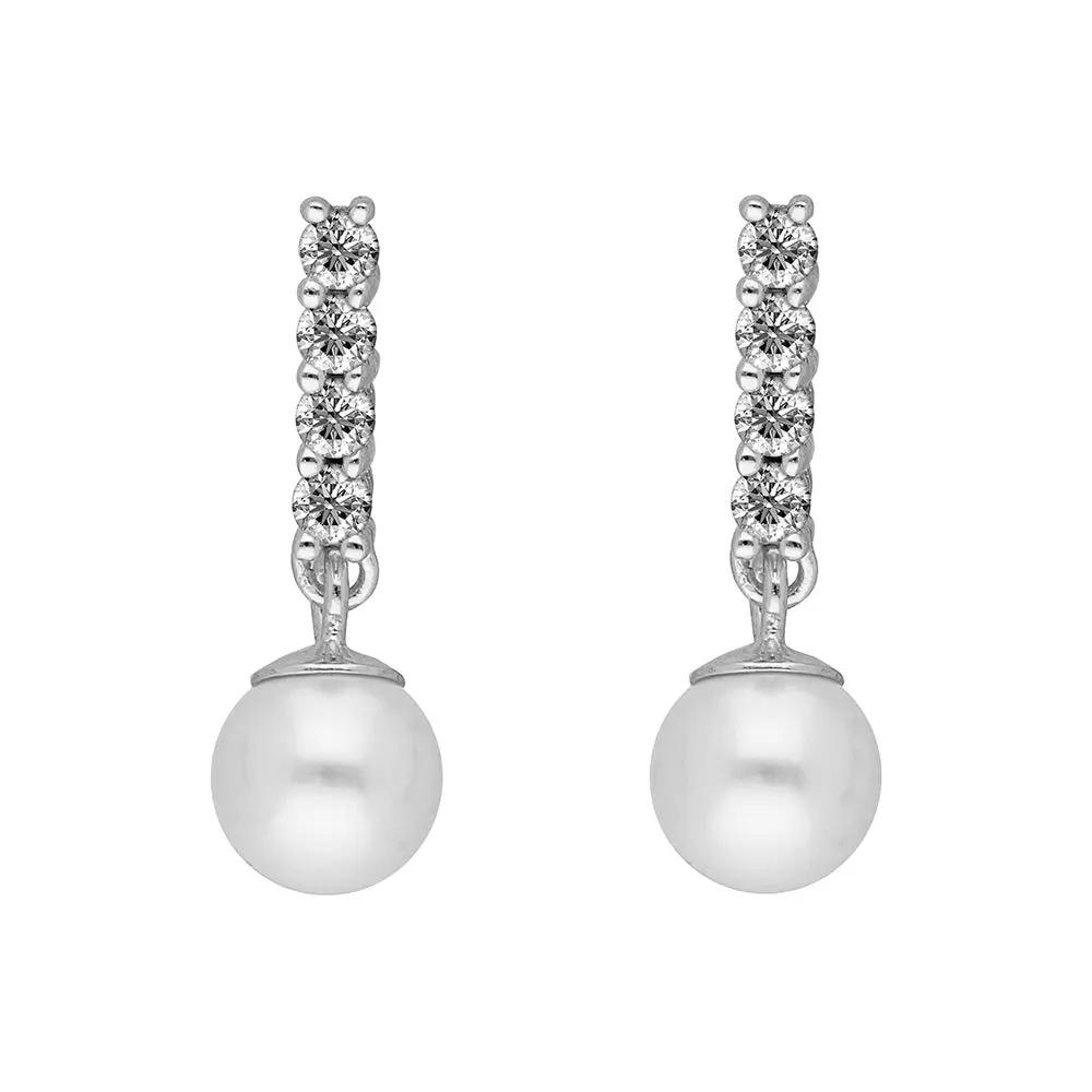 BRIZZLING BME210 Σκουλαρίκια από Επιπλατινωμένο Ασήμι με Πέρλες & Διαμάντι Μοϊσανίτη