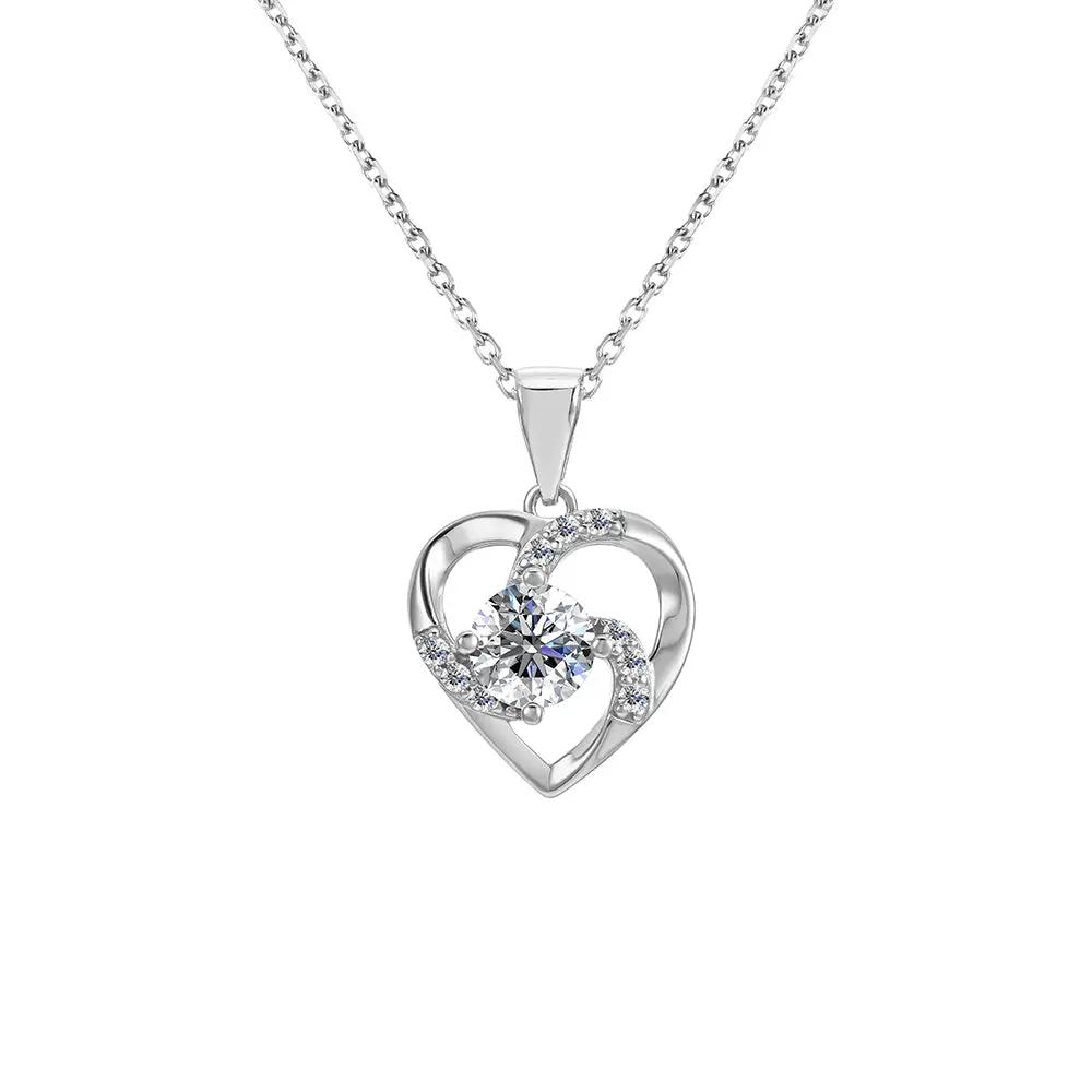 BRIZZLING BMP060 Κολιέ Καρδιά από Επιπλατινωμένο Ασήμι με Διαμάντι Μοϊσανίτη