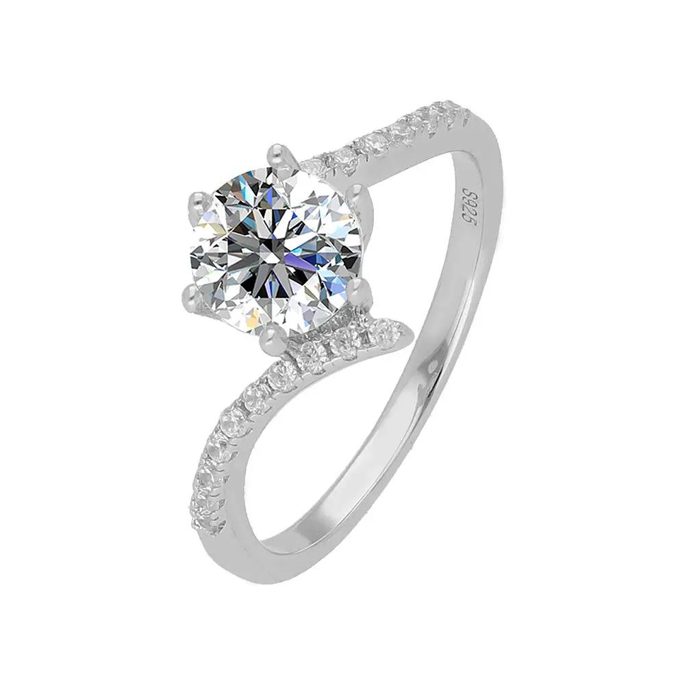BRIZZLING BMR072 Μονόπετρο από Επιπλατινωμένο Ασήμι με Διαμάντι Μοϊσανίτη