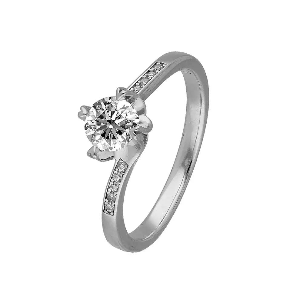 BRIZZLING BMR230 Μονόπετρο από Επιπλατινωμένο Ασήμι με Διαμάντι Μοϊσανίτη