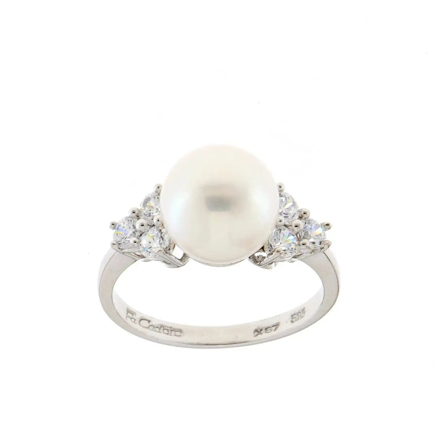 FaCad'oro RI-476-9 Δαχτυλίδι από Λευκόχρυσο 9ct με Πέρλα και Ζιργκόν