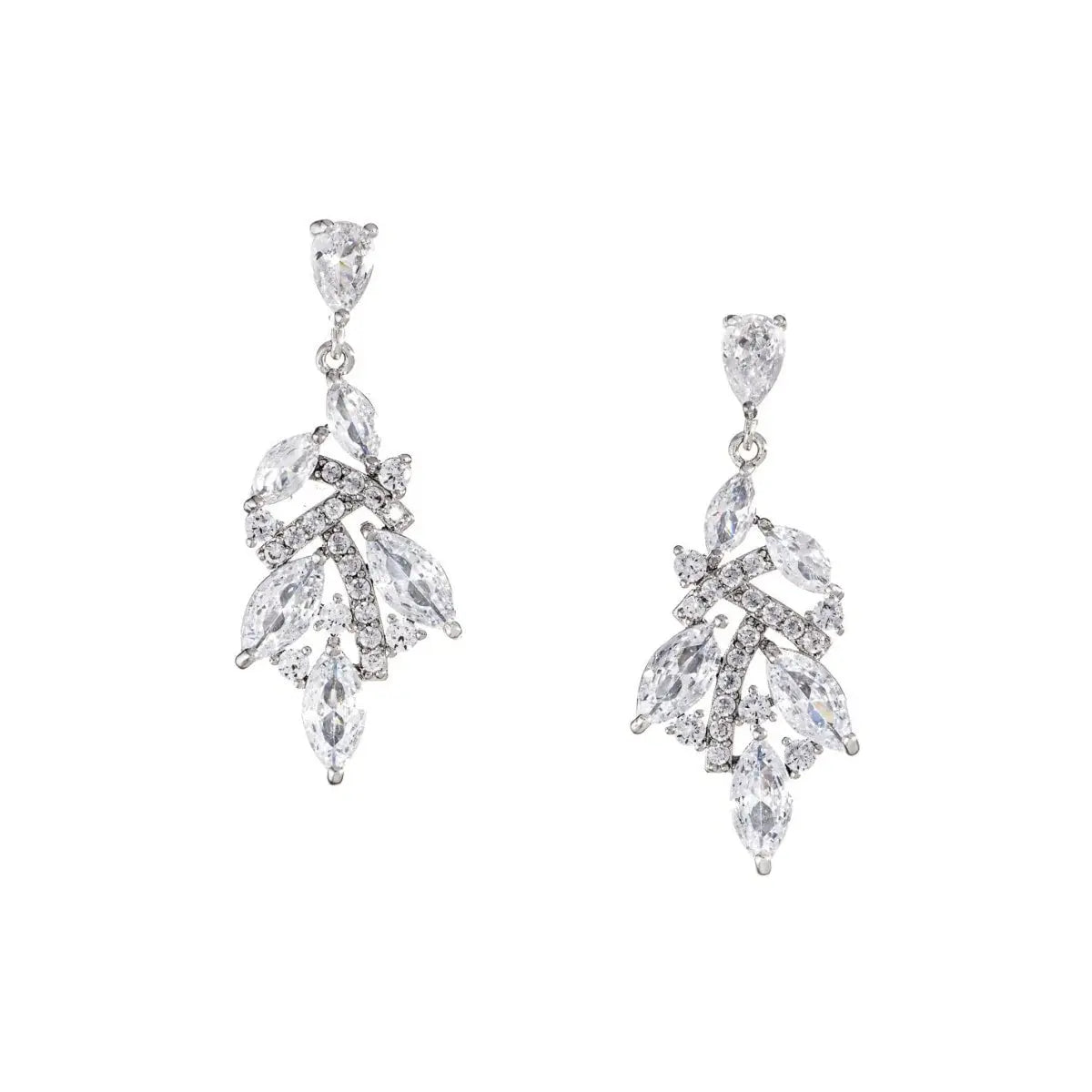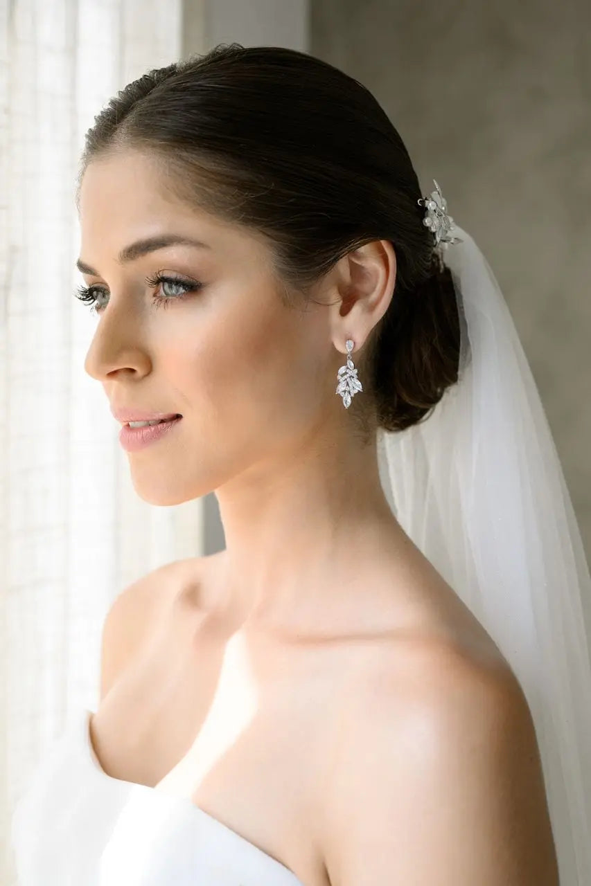 Τα συγκεκριμένα νυφικά σκουλαρίκια σε σχήμα δάκρυ είναι φτιαγμένα από ατσάλι σε ασημένιο χρώμα διακοσμημένα με πανέμορφα λευκά ζιργκόν.