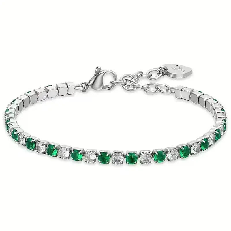 Luca Barra BK2633 Βραχιόλι Ριβιέρα από Ατσάλι με Λευκά και Πράσινα Ζιργκόν