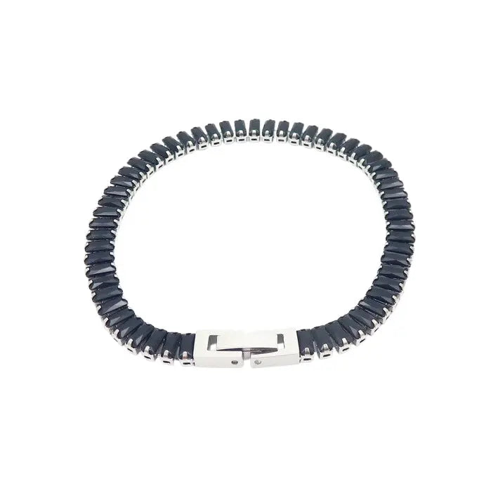 Puppis PUB65520S Βραχιόλι Ριβιέρα Από Ανοξείδωτο Ατσάλι με Μαύρα Ζιργκόν