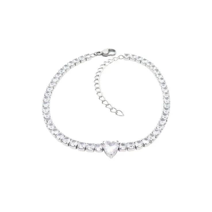 Το γυναικείο κόσμημα βραχιόλι με ζιργκόν είναι φτιαγμένο από ατσάλι σε ασημί χρώμα, που συνδυάζει εξαιρετική ποιότητα και design.
