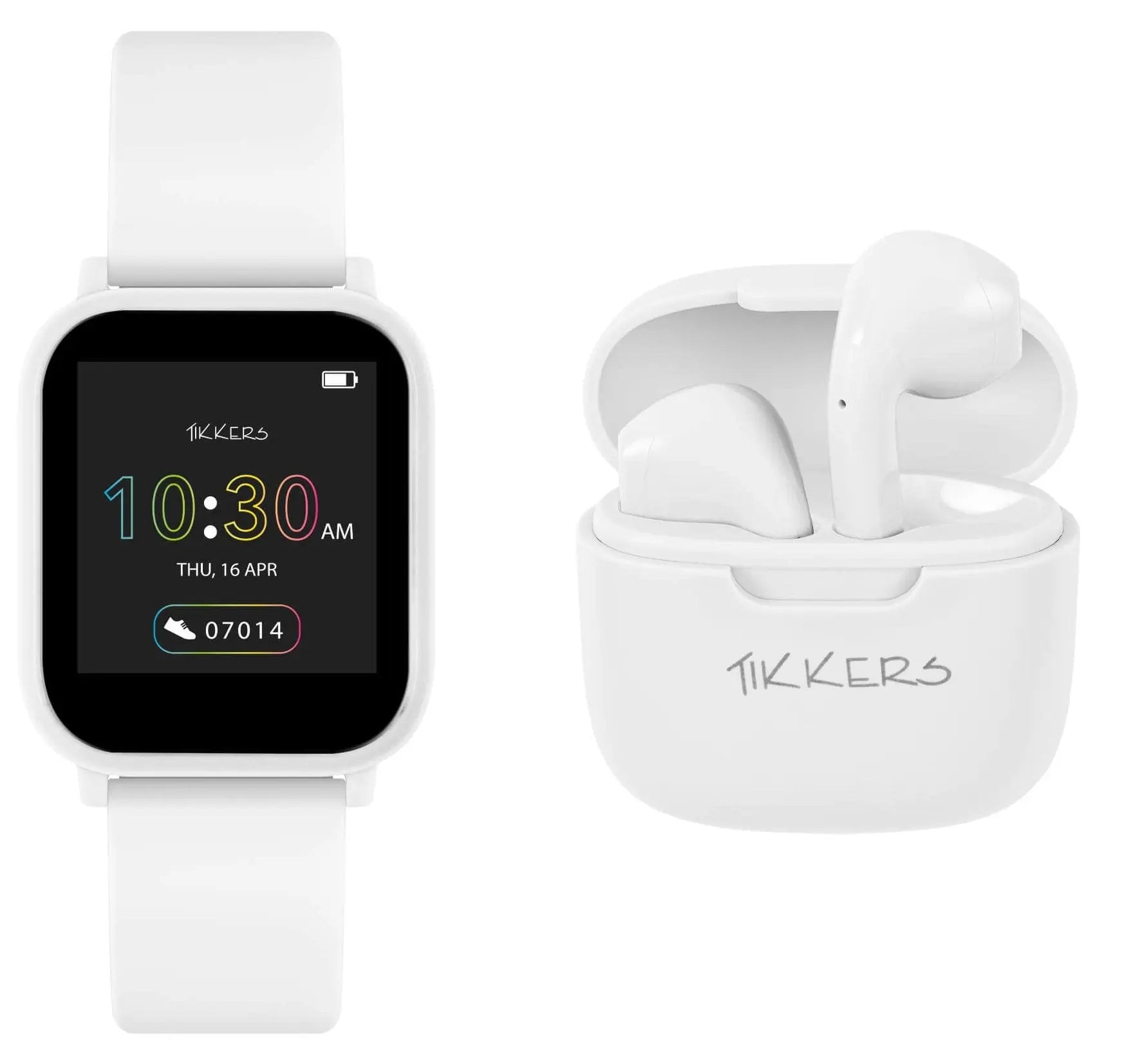 Tikkers TKS10-0007-SET Teen Smart Watch and Earbuds Set White Silicon Strap