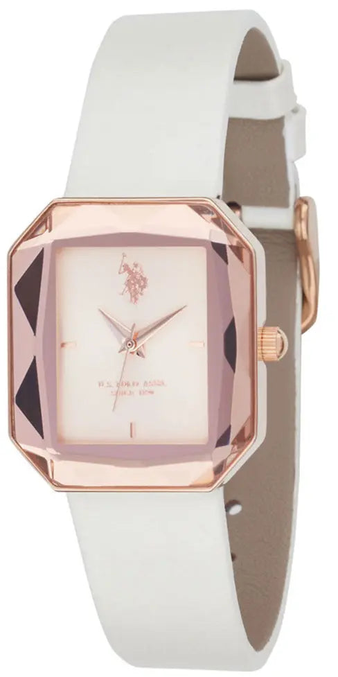 U.S. POLO USP8223RG Sparkly White Leather Strap